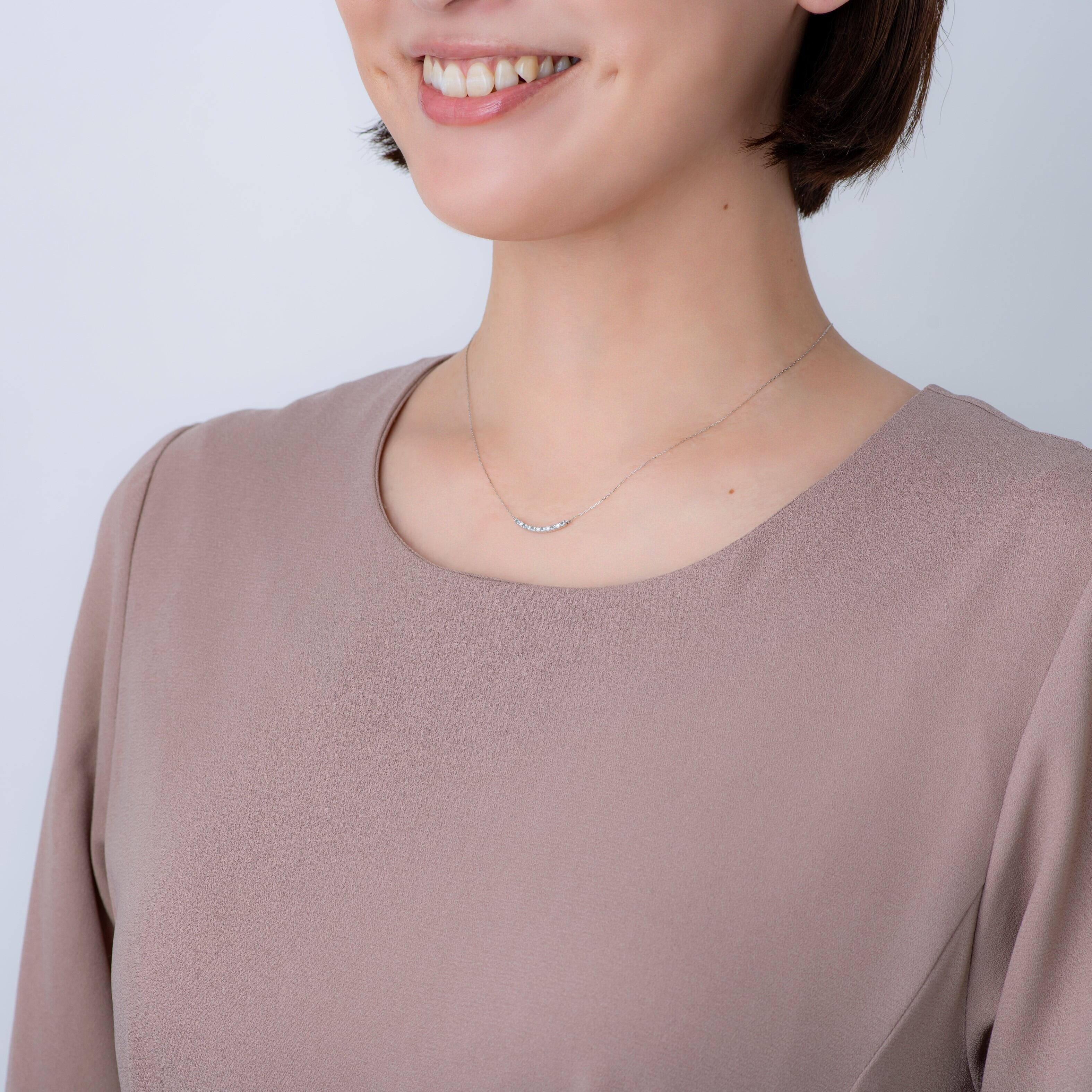 人気のスマイルモチーフがにゆるやかにカーブを描きデコルテラインを綺麗に演出してくれます。シンプルでありながら洗練されたデザインです。